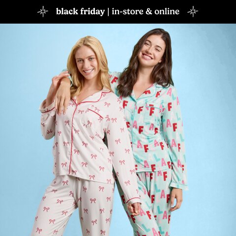 Stay cozy & save big with our exclusive pajama promotions! Buy one pj bottom, get a top for 50% off* Short sleeve lounge shirts are a $16.99 value! Limit 1 per qualifying transaction. Short sleeve lounge shirt must be added to qualifying cart in order to receive discount. Brands include Mia & Tess, Amanda Blu and Merry Markers. Excludes all other lounge wear brands & sale/clearance products. Offer valid in-store & online, while supplies last. Terms & conditions are subject to change.